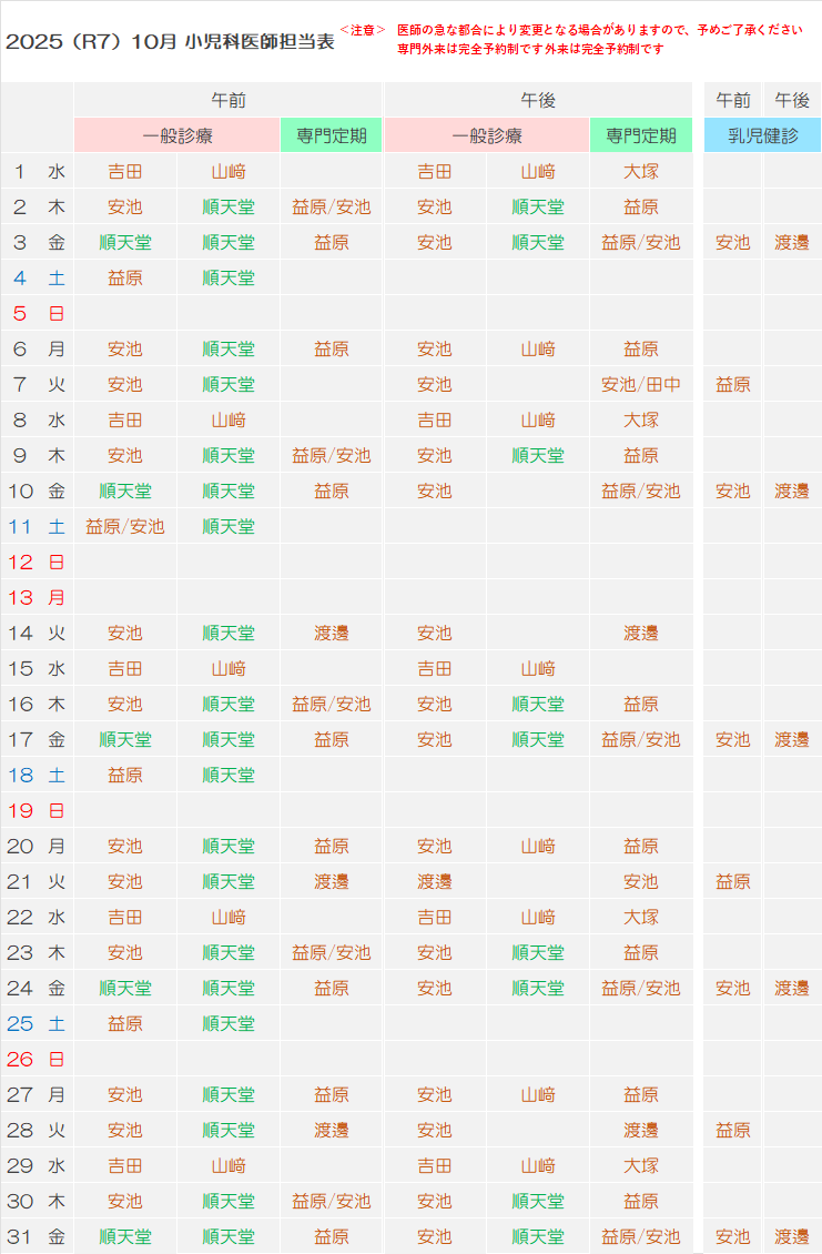 小児科医師担当表