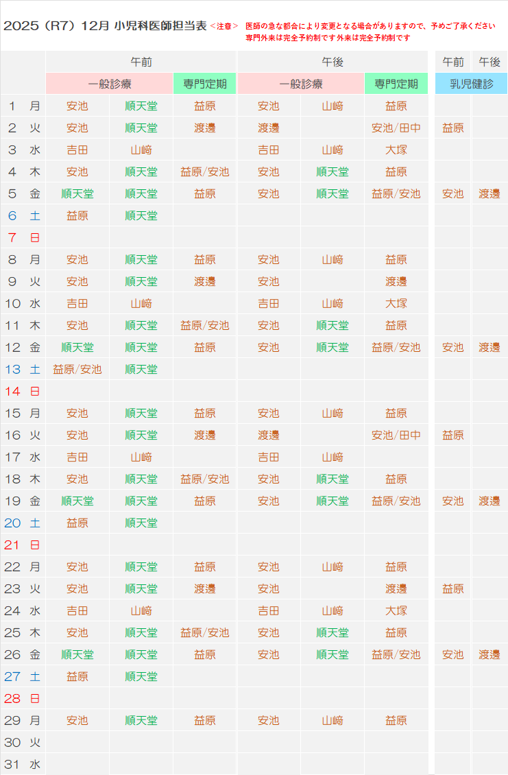 小児科医師担当表
