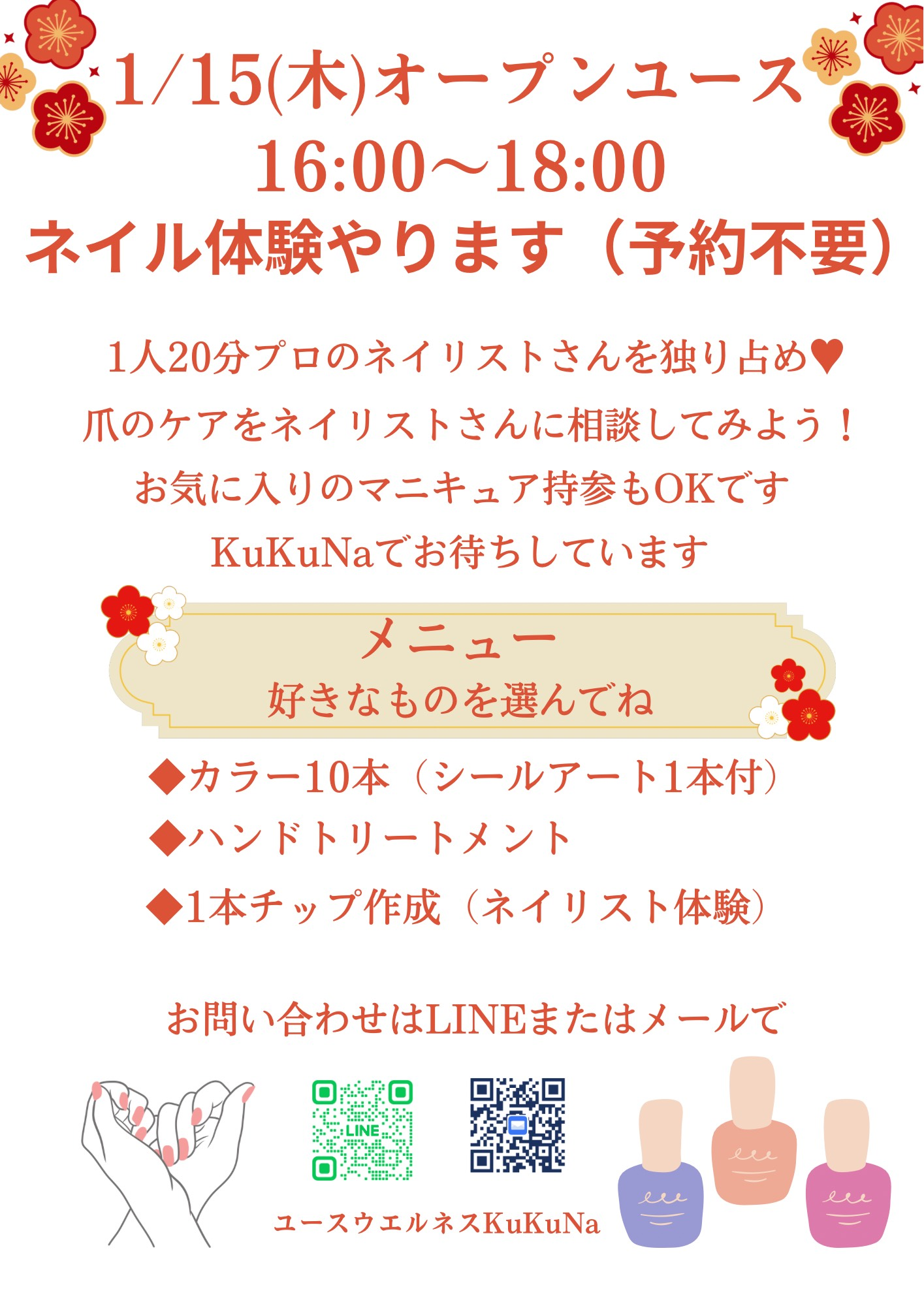 1/15㈭オープンユース★ネイル体験開催!!